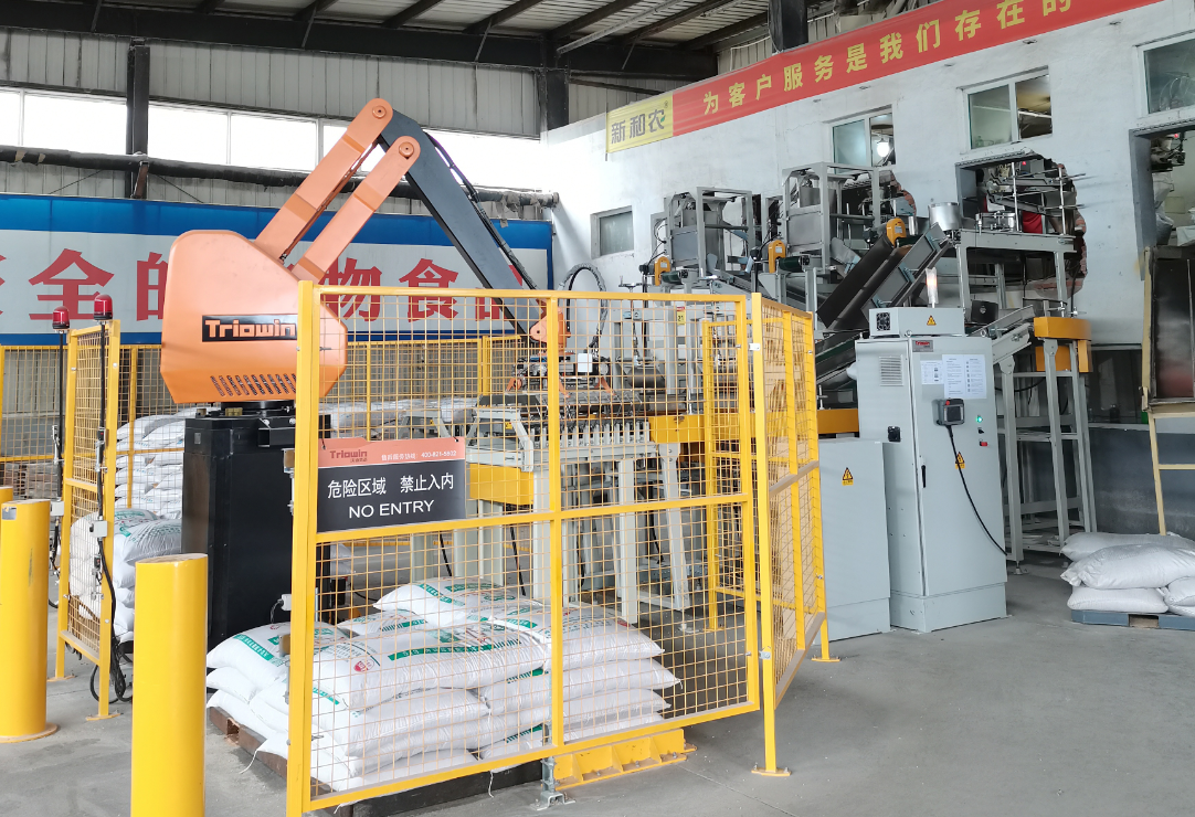 隨著國(guó)內(nèi)產(chǎn)業(yè)結(jié)構(gòu)調(diào)整,畜牧行業(yè)轉(zhuǎn)型升級(jí)、新常態(tài)發(fā)展機(jī)遇期,加上和農(nóng)牧業(yè)集團(tuán)的創(chuàng)新式發(fā)展,在生產(chǎn)車間成品接包區(qū)引入自動(dòng)化設(shè)備碼垛機(jī)器人。