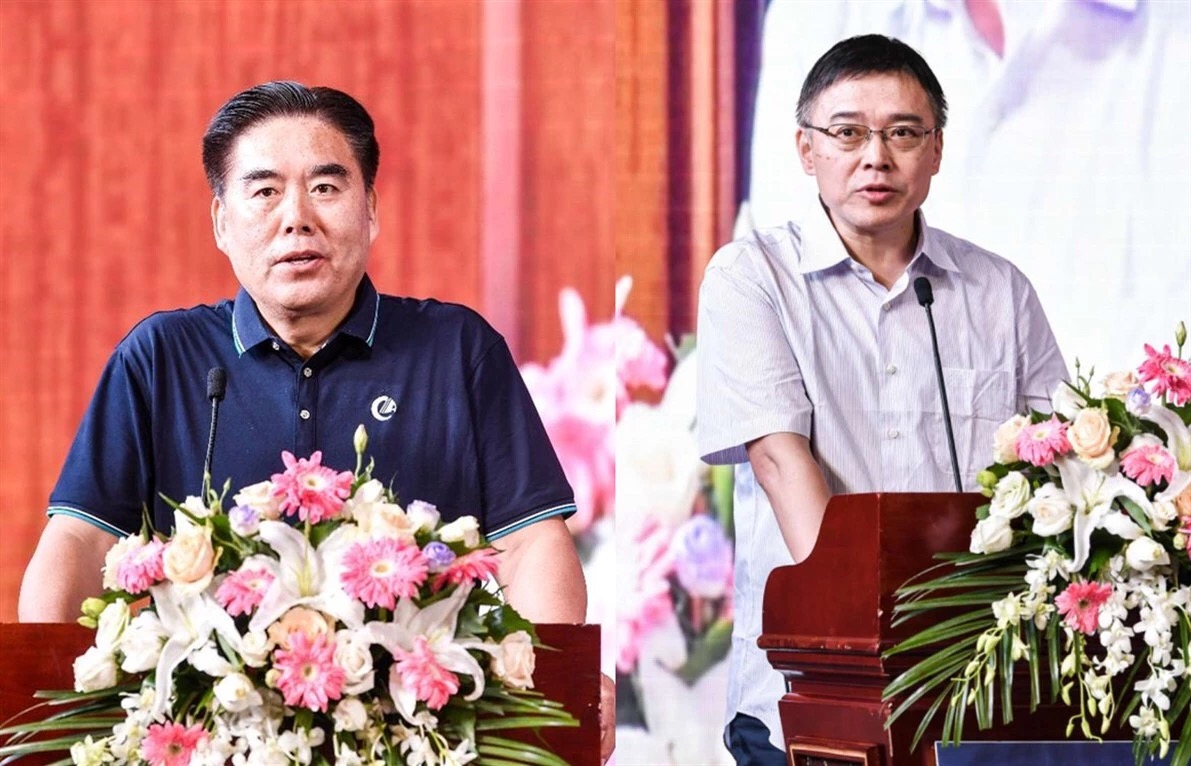 致辭:左為中國畜牧業(yè)協(xié)會(huì)會(huì)長李希榮,右為農(nóng)業(yè)農(nóng)村部食物與營養(yǎng)研究所副所長王曉紅